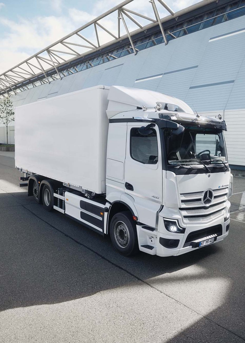 Durch das reduzierte Batteriepaket-Gewicht gegenüber dem eActros 600 bietet der eActros 400 über 3 Tonnen zusätzliche Zuladung. Damit ist das Nutzlastniveau vergleichbar mit einem Diesel-Lkw (über 25 Tonnen).